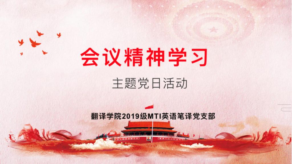 2020年4月17日下午,2019级MTI英语笔译党支部开展了四月份主题党日活动。本次活动为线上会议,以“会议精神学习”为主题,由支部书记刘苏萌同志主持,支部同志全体参与。会议内容主要为:支部书记领学相关会议精神,集体在线观看国家安全教育日有关短片,支部党员回顾学习内容并进行线上讨论。