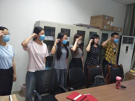 首先党支部书记张信同志带领四、五、六月份入党的党员同志重温入党誓词,仿佛回到了成为党员的那一刻,句句誓言依然回荡耳畔,让同志们永不忘初心,永铭记使命。