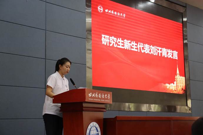 研究生新生代表2023级MTI笔译专业刘汗青同学对于如何度过未来的研究生时光,表示眼里要有“光”,做青春追梦者;手上要有“活”,做学业有成者;肩上要有“责”,做奋进担当者。