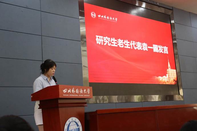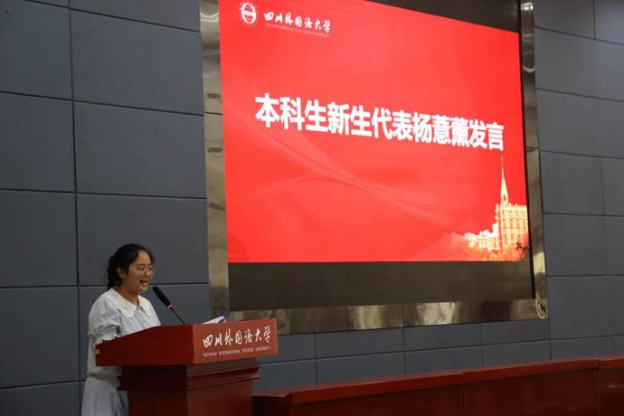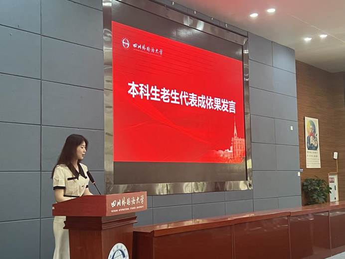 老生代表2022级MTI口译专业袁一圖同学在发言中鼓励同学们,无论人生旅途是遍布荆棘还是铺满鲜花,都要始终保持坚持不懈、永不言败的韧劲,以勤奋学习筑牢知识之基,直面挑战,开创未来。“我们走过的每一步,都会化作通往梦想的路标、登上高峰的基石”。