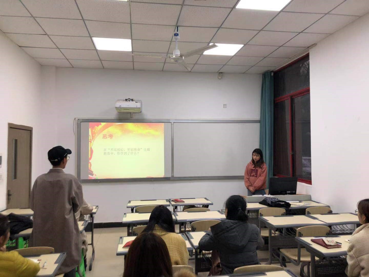 全体支部党员通过各式各样的活动形式,学习到了很多,对自身进行了深思与反省,并就学习的内容与历程发表了各自的想法。陶杰同志表示;“通过这次活动,对于自己作为一个党员的责任与义务有了更深刻的认识。以及更加确定了自己当初的考研目标,通过翻译学习,为中国文化走出去献出自己的一份力量。”刁诗钰同志说:“‘两讲’活动中的江姐故事对我触动很大。她作为共产党员,为党的事业而奋斗而献出自己的生命,坚守了自己的初心和使命。深受鼓舞的我认为,对于年轻党员来说,无论是学习还是生活中,都要发挥模范带头作用,为大家提供服务。同时号召身边的朋友同学向党靠齐,坚持拥护党中央领导。”姜雪莹同志说:“不忘初心、牢记使命,不论是在学习还是生活中,都可以给我们一个很好的指引。做事不要具有功利心,要坚持初心,热爱生活。”袁继春同志说:“责任和义务,作为普通党员,可能做不了太大的事情,能做到的就是每天坚持理论学习和帮助他人。而且,通过学习,加强了自己的自律性,懂得了放弃容易,但是坚持下来就一定很酷。”