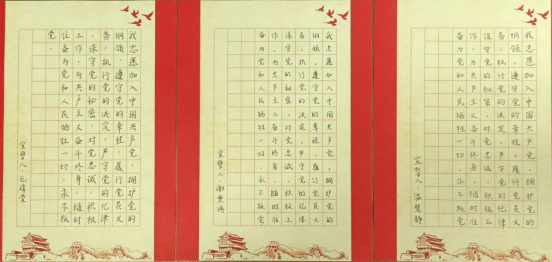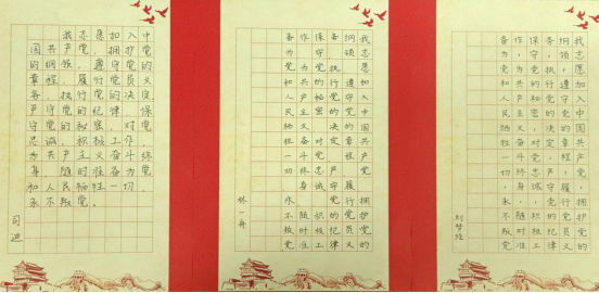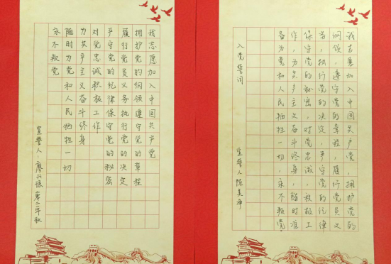 在此,我们选取了部分党员同志抄写的入党誓词进行展示,让我们再次一起庄重宣誓: