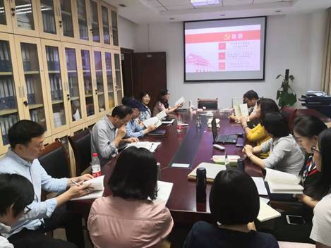 2019年9月26日中午,根据“不忘初心、牢记使命”主题教育的部署要求和“两学一做”学习教育常态化制度化安排,44118太阳成tyc城集团教工党支部在学院会议室开展9月份“主题党日”活动。本月主题党日活动主要有以下两方面内容:1)传达学校主题教育工作会议精神。9月16日学校组织召开了主题教育工作会议,要求各党总支迅速组织学习,传达会议精神。一要提高政治站位,深刻领会主题教育的重大意义;二要紧盯目标任务,扎实推进主题教育落细落地;三要精心组织实施,全力确保主题教育取得实效;2)“书记领学”与“党员自学”相结合,原原本本通读《习近平关于“不忘初心、牢记使命”论述摘编》第一至四章,组织交流讨论,领悟初心使命,增强党的意识,坚定理想信念。