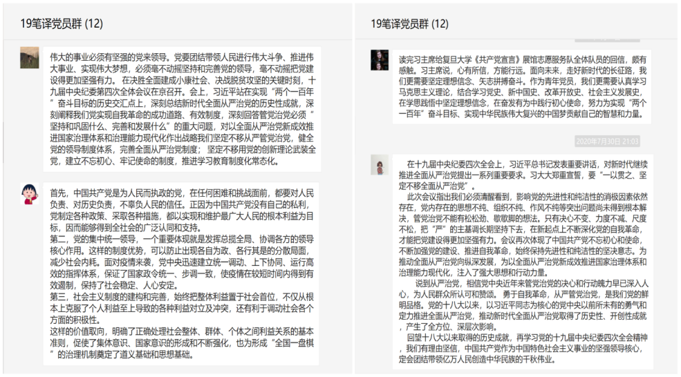 2020年7月29日,2019级MTI英语笔译党支部在线上召开7月份主题党日活动。本次活动由支部书记刘苏萌同志主持,支部党员同志悉数参加。活动的主要内容为学习十九届中央纪委四次全会精神状况;学习市委五届八次全会情况;学习党的十九届四中全会精神专题学习视频;习近平给复旦大学《共产党宣言》展示馆党员志愿服务队员的回信内容。