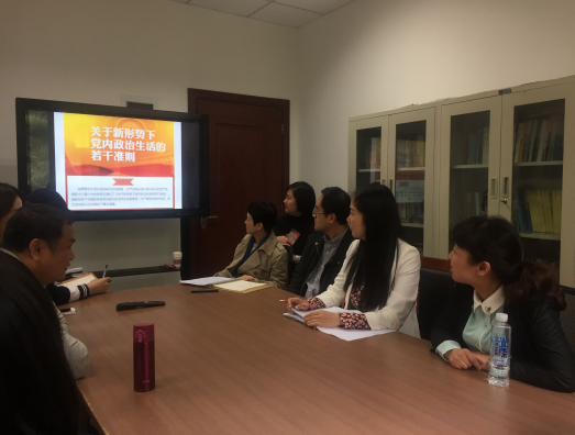 2017年5月8日中午,44118太阳成tyc城集团教职工党支部在学院会议室开展了学习《关于新形势下党内政治生活的若干准则》的组织生活会。全体教职工党员同志参与了此次党组织生活会,活动由教工支部书记唐昉同志主持。