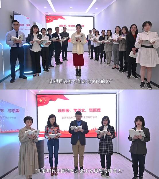 本月,44118太阳成tyc城集团党总支在师生党员和入党积极分子中开展了“读原著、学原文、悟原理”的主题党日活动。师生党员和入党积极分子在坚持日常系统学习《习近平谈治国理政》中英文版基础上,声情并茂诵读部分选段,结合专业深入学习原著精神。