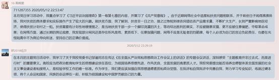 紧接着是学习《中国共产党章程》第一章、第二章。在党员的八项义务规定中,党章将学习“三个代表”重要思想与学习马克思列宁主义、毛泽东思想、邓小平理论并列在一起作为党员必须履行的义务。对此,陈曦同志认为:“这是我们在新的历史条件下必须遵循的基本行为规范,我们一定要领会这项规定的时代精神,在这个应对疫情和三大攻坚战的关键时期,我们一定要旅行党员义务、承担党员职责,尽管仍是学生的我们力量十分有限,但还是要发挥党员的先锋带头作用,为疫情防控出一份力。”