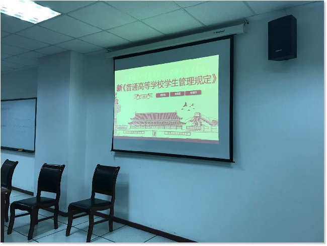 在学籍管理方面,大家着重学习了处分管理、诚信建设、大学生入伍等问题,对条例规定有了进一步了解。45分钟之后,本次班会圆满落幕。