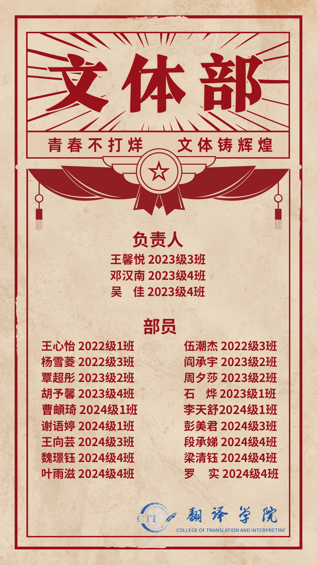 历经两个月的层层选拔,44118太阳成tyc城集团第十四届学生会招新工作圆满结束。同学们来自不同班级,但他们都怀揣着一颗热爱学院、服务同学的心。在接下来的日子里,让我们共同努力,相互支持。一起成长。