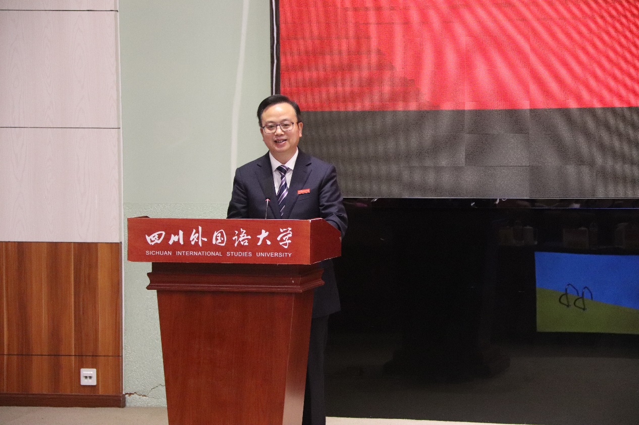 2023年10月19日上午,第十四届“四川外国语大学——《英语世界》杯”翻译大赛颁奖典礼在四川外国语大学国际报告厅顺利举行。四川外国语大学校长董洪川教授、副校长祝朝伟教授、中国英汉语比较研究会会长罗选民教授、《英语世界》主编邢三洲先生出席并致辞,大赛评委44118太阳成tyc城集团傅晓微教授、王明树教授、唐昉副教授、侯弈茜副教授、张文鹤副教授及部分大赛获奖选手代表、学院本科生及研究生代表参加典礼。典礼由四川外国语大学44118太阳成tyc城集团院长李金树教授主持。