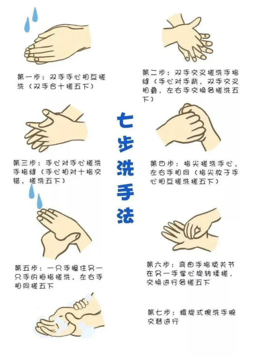 外出宿舍与人员接触时,请佩戴口罩。使用后的口罩,请丢弃在指定地点。请按“七步洗手法”正确洗手。