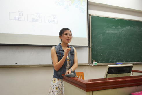作为已被“美的”集团外销部聘用的职场新人,李志率先与大家进行了分享。她从现阶段、暑期及秋招三个时间段入手,介绍了简历制作、实习兼职和就业信息查询方面的相关内容。在这过程中,她结合自己的求职面试经历,与大家分享了一些实用的简历制作技巧、招聘网站或兼职群信息,并建议有需要的同学们尽快着手于简历的制作,利用即将到来的暑期做一些高质量的实习工作。随后的提问环节中,李志对同学们提出的面试方面的问题也给出了详细解答。