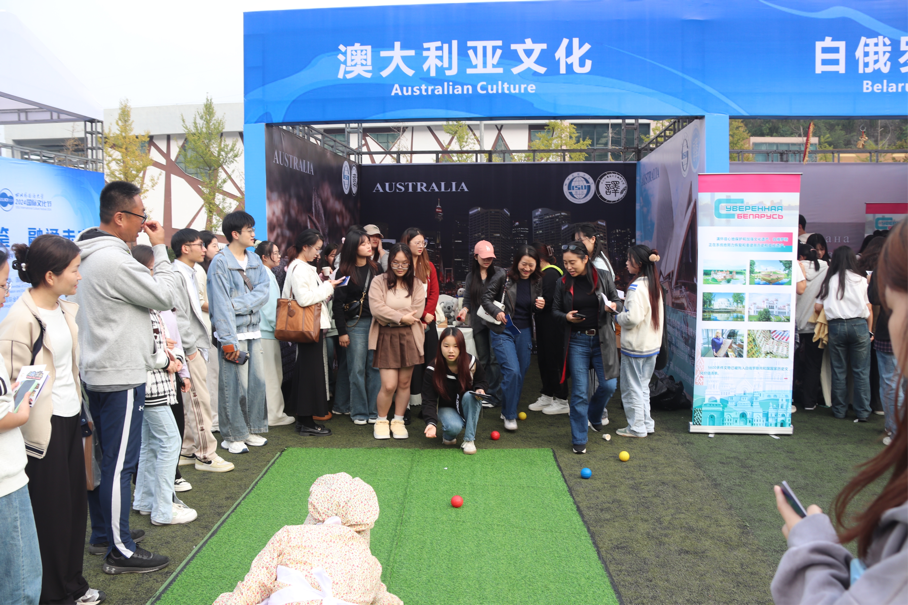 11月15日,我校2024国际文化节在西区风雨操场拉开帷幕。本次活动由四川外国语大学校团委、国际合作与交流处主办,共设置了38个特色展区,其中包括26个国别文化展位以及4个非遗文化展区,以文化介绍、美食品鉴、游戏互动等方式寓教于乐,开展文化交流传播。我院在此次文化节中主要负责澳大利亚文化展区的相关活动和展示。
