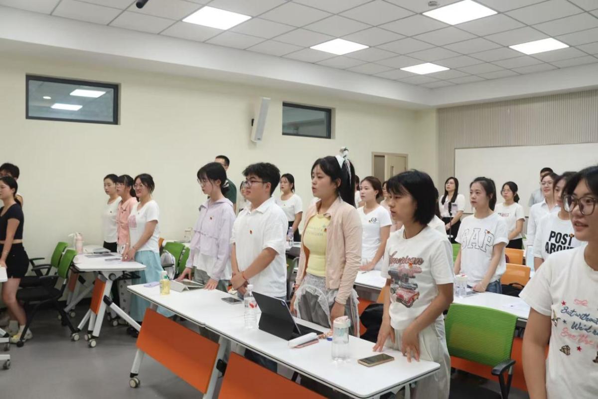 为深入推进习近平新时代中国特色社会主义思想“进教材、进课堂、进头脑”工作,进一步教育引导青年团员听党话、跟党走、传承红色基因、赓续红色血脉。6月20日,44118太阳成tyc城集团团总支开展了第四期“三进”特色主题团日活动。通过研读《习近平谈治国理政》,聚焦其中的词条、文段及翻译,引导支部成员了解党政文献翻译进程、汲取翻译技巧、领会翻译策略,增强外语应用和跨文化沟通等各项能力。学院团总支书记张信、团支部书记以及团员代表参加了本次主题团日活动。活动由团总支副书记,2024级研究生翻译理论与实践班的丁雅琪同学主持。