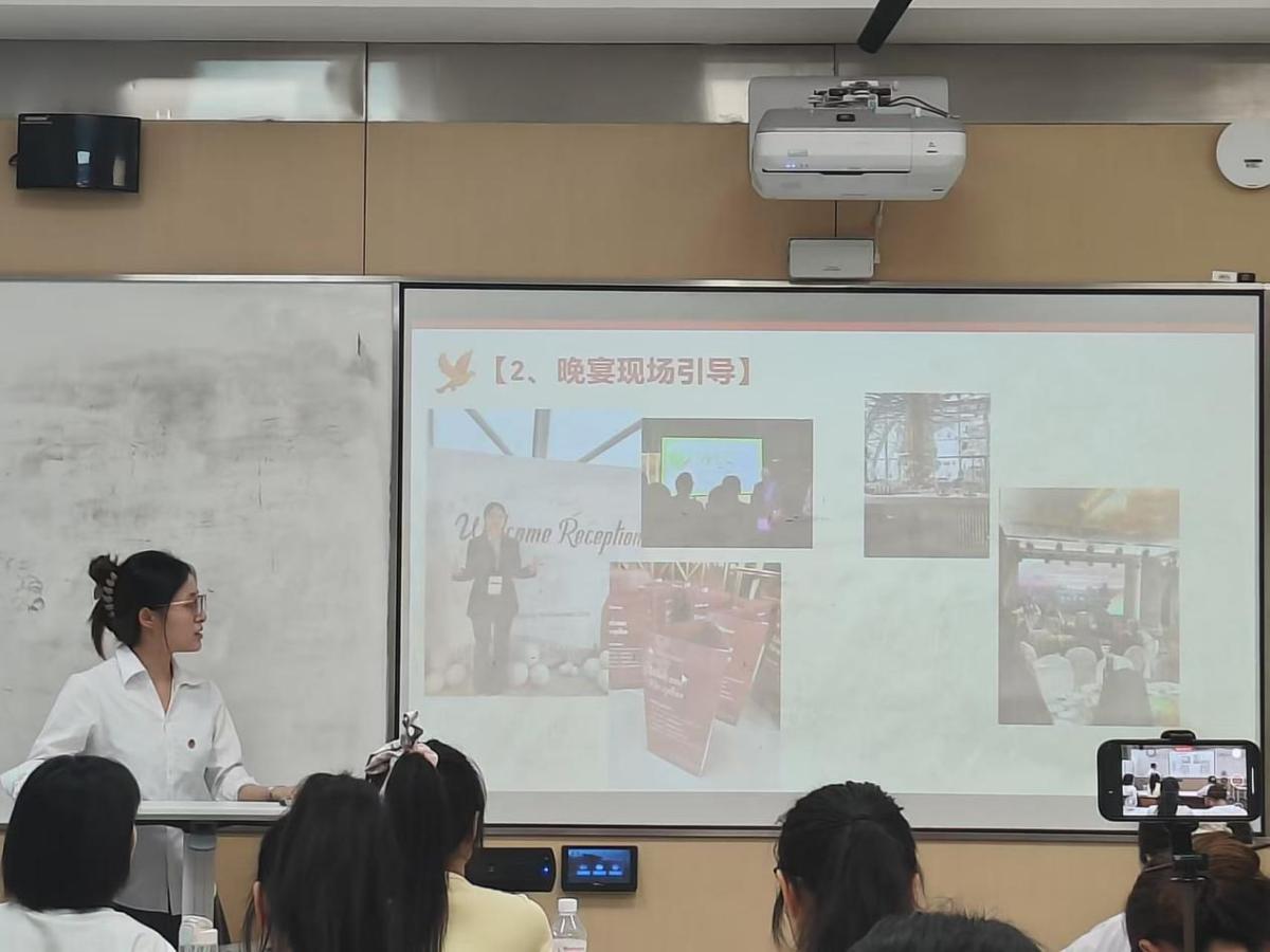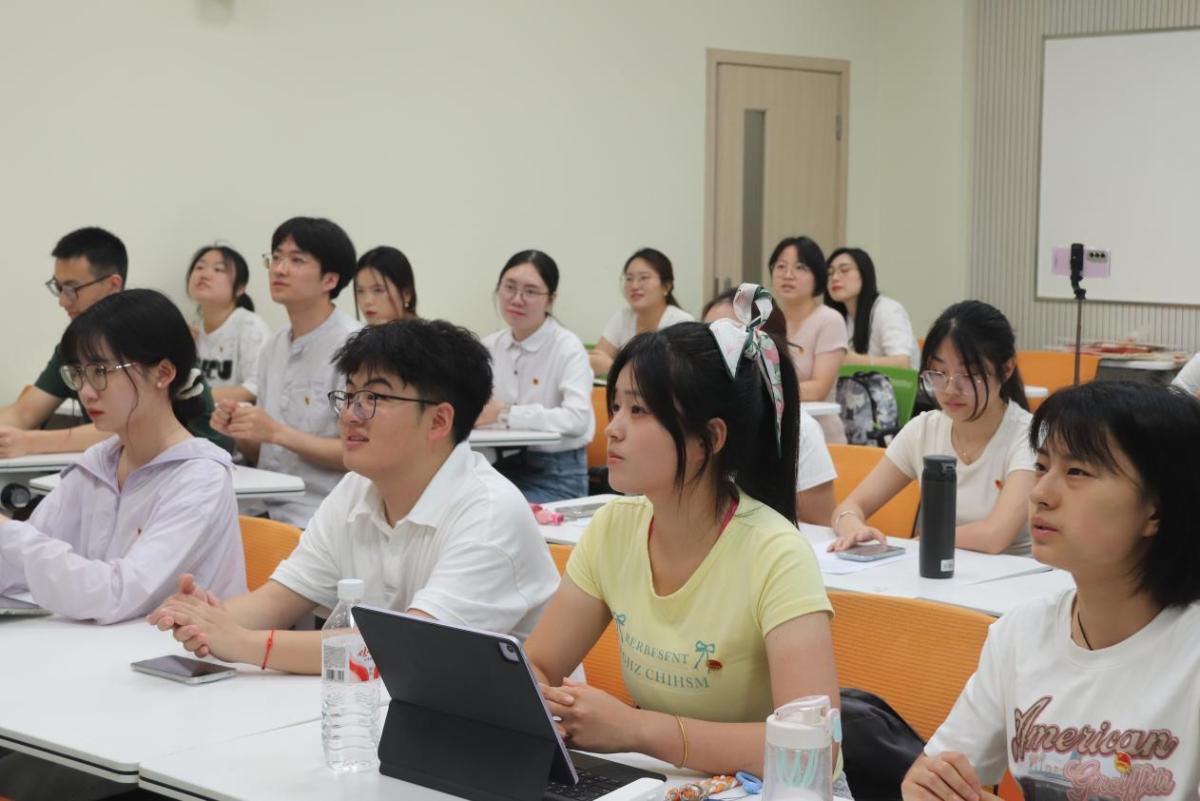分享交流环节中,三位团员代表结合实践经历畅谈感悟。其中,研究生2024级笔译3班谢婕同学分享了她参与第六届胶囊内镜全球高峰论坛和翻译博士专业学位点研讨会的志愿经历,总结出珍惜机会、认真诚恳及充分准备的实践心得,彰显出新时代青年在社会实践的责任担当。