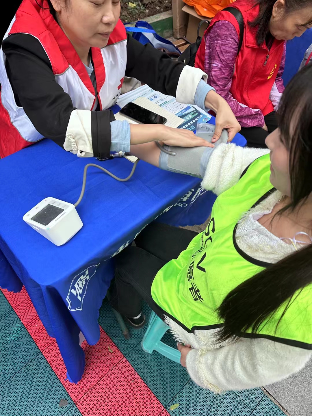 在接下来的义诊活动中,志愿队成员协助医院的专家和医护人员耐心地为老人们量血压、测血糖,并结合宣传手册针对老年人给予深入浅出地健康知识讲解以及康复指导建议。进一步增强老年人的自我保健能力。