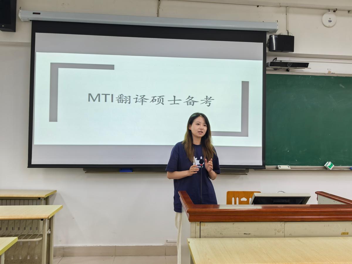 翻译专业2025届本科毕业生许涵从考研心态、考研择校和学习方法三个方面分享了自己考研对外经济贸易大学英语语言文学专业的经验。她以提问、回答的方式解答了同学们备考过程中经常关注的一些问题,介绍了个人学习方法,强调了备考过程中的压力释放,鼓励大家“先行动,然后水到渠成”。