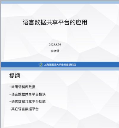 为推进语言数据共享平台的建设,推动语言数据科学以及语言智能等相关领域人才的培养,实现语言数据建设与应用的标准化、流程化和科学化,2023年8月28日至9月1日,由语言数据共建共享与人才培养协作组主办、上海语之能数据科技有限公司协办的“语言数据共建共享青年教师研习会”在上海市漕河泾光华园举行。本次研习会旨在指导高校青年学者建设语言数据及语料库并学会使用语言数据和语料库开展相关主题的研究工作,全国多所高校的近30名青年教师报名参加,我院教师彭红艳应邀参加了本次研习会。