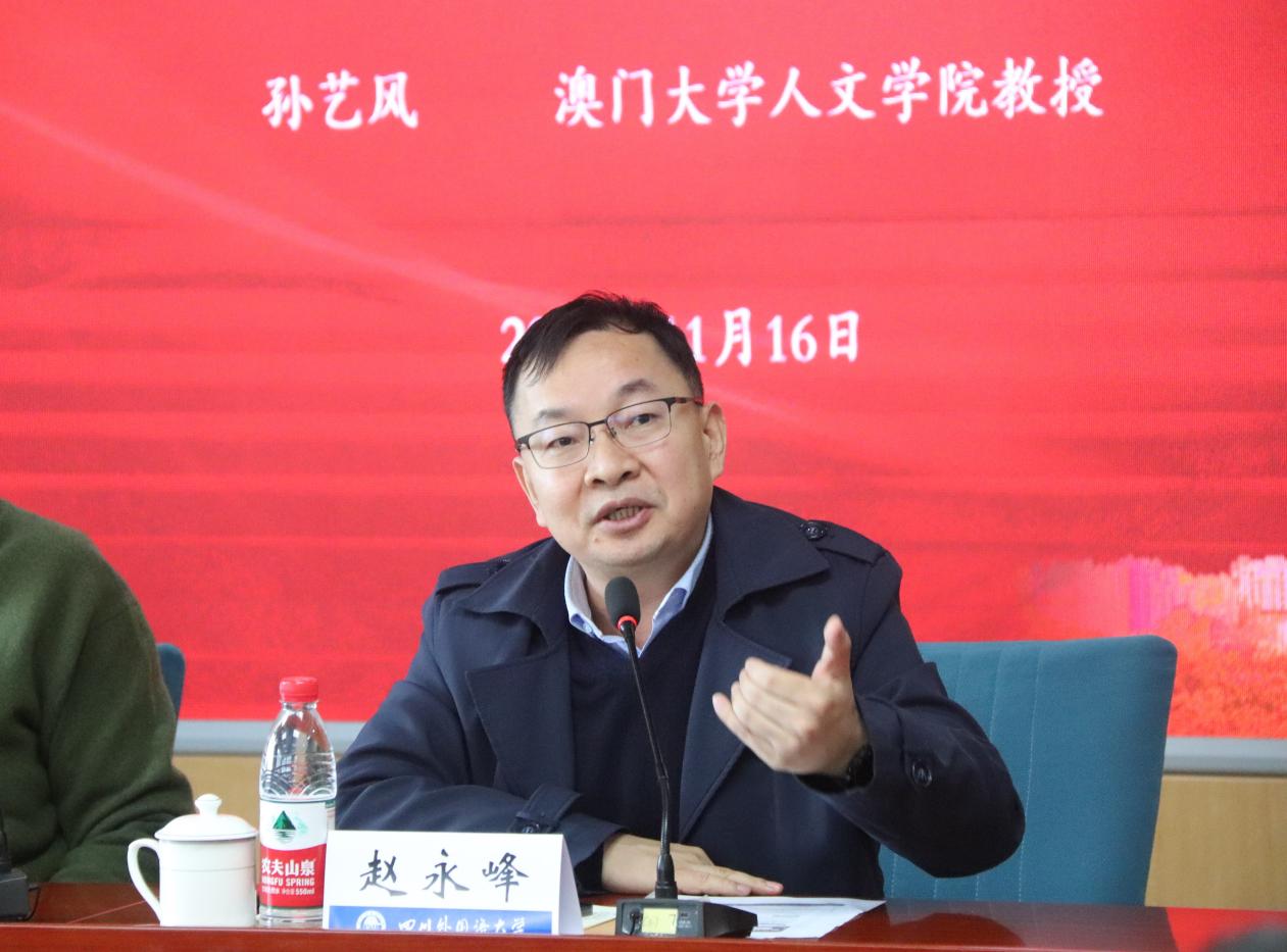 2023年11月16日上午,在西区立德楼C517会议室,澳门大学人文学院翻译学讲座教授、国际译联期刊Babel: International Journal of Translation主编孙艺风教授做客我院歌乐译(Glory)讲坛,为广大师生带来了以“Poetics and Literary Translation”为题的讲座,本场讲座由学校英语学院院长赵永峰教授主持。