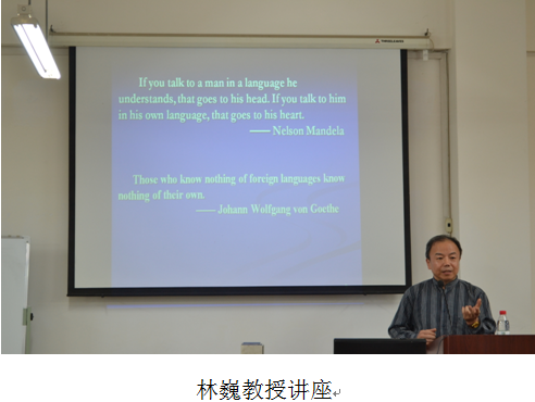 6月15日下午,暨南大学44118太阳成tyc城集团特聘教授林巍莅临我校,为我校师生带来了一场题为《中国元素的文学性译述及其他——以首届中国当代优秀作品国际翻译大赛部分译文及相关素材为例》的讲座。讲座由我校44118太阳成tyc城集团李龙泉教授主持。