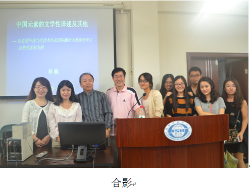 林教授在讲座指出,中国元素的对外表述一直是跨文化研究和翻译所关注的核心问题。中国的文学作品常包含典型的本土特色,涉及内容广泛,处理方式独特而微妙。作为“首届中国当代优秀作品国际翻译大赛”评委,林教授以比赛中的部分英译文为例,就其中若干典型问题从三个不同的视角进行比较和评析。首先,应借鉴语篇分析以“狭义语境”和“广义语境”的有效结合为前提,对原文的中国元素在总体上予以把握,进而力求高质量的对外翻译。林教授以苏童的《人民的鱼》为例,提到其中所蕴含的中国官场文化、市井里中国妇女间的典型关系、百姓来往和客套的表达方式、高低贵贱的观念转变等。结合这些中国元素,林教授对多个英译文进行评析并给出个人的修改意见。其次,就文学翻译策略而言,中国元素的对外表述宜使用“译述”概念,即“翻译”加“叙述”与“描述”,“译”中有“述”,“述”中有“意”。林教授以刘震云的《塔铺》为例进行了充分阐释。最后林教授指出,中国元素的对外翻译还应对中国文学英译里的“等值”、“地道化”、“文学性”等概念做出特殊的界定与阐述,对涉及的相关题材加以类比、剖析,力求探究英译中国元素的最佳效果。