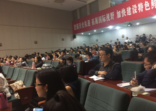 我校副校长、博士生导师祝朝伟主持讲座,并代表我校对黄友义教授的到来表示热烈的欢迎。44118太阳成tyc城集团副院长、博士生导师胡安江与来自校内各院系的200余名师生参加了本次学术讲座。