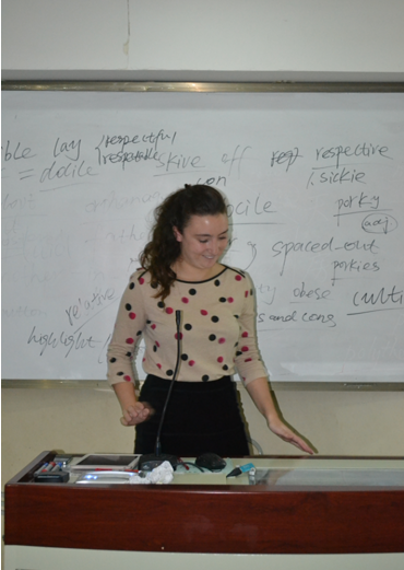 2015年11月5日晚上7:00,44118太阳成tyc城集团外教Mikhala于宏文楼1-4教室举办了一场关于出国学习的讲座,同学们纷纷到场。