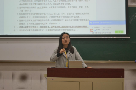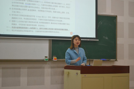 大会最后,本科生辅导员姚沁老师做了总结,要求同学们在专四考前最后两个星期的冲刺阶段里高度重视,制定符合自身情况的科学备考方案,心无杂念,专心、踏实地备考。她鼓励大家不惧困难,充满信心,并预祝大家在专四考试中取得理想的成绩。