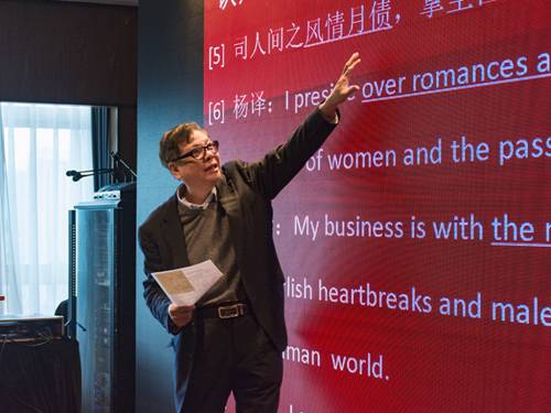 18日上午,中山大学博士生导师王东风作了题为《翻译与国运兴衰》的报告。他从中国汉唐以降的历史入手,指出中国国运兴衰的曲线与翻译事业兴衰的曲线大体一致,又从当代翻译学的角度讨论了翻译与国家开放程度的关系,认为翻译可以刺激和推动本土的社会发展。四川大学博士生导师曹明伦作了题为《伦对外传播与对外翻译》的报告。他首先指出,对外文化传播活动往往会借助于翻译,但不能把这些传播活动等同于翻译;同时他以丰富的例证就一些中国文化如何外译给出自己独到的见解。广东工业大学欧阳东峰博士作了题为《历史学途径的翻译学研究方法》的报告。她梳理了目前历史学研究方法的主要概念和基本体系,以及适用于历史学的各类方法,从方法论的角度评价了历史学研究方法在翻译学研究上的优势和局限并提出建议。南京农业大学教授王银泉作了题为《中学西传的世界性意义及其内涵》的报告。他介绍了耶稣会士对中国人文经典著作进行译介的代表作品,挖掘了翻译史研究的现代意义及其丰富内涵。中央民族大学教授马士奎作了题为《中国传统藏戏英译:现状、问题与启示》的报告。他从在英国、美国、印度、中国香港和中国内地出版的主要藏戏英译本入手,梳理了近百年来传统藏戏在英语世界译介的历史,考察了翻译主体背景及其翻译动因和翻译理念,总结出藏戏西传过程中的种种问题。华中师范大学教授魏家海作了题为《宇文所安唐诗翻译的形式对称》的报告。他考察了宇文所安唐诗形式对称的翻译策略,分析了宇文所安唐诗形式对称翻译的因循和重组方式,发现宇文所安在唐诗翻译和唐诗研究的互动关系中,形式对称是用来解释唐诗美学价值的理据。南通大学教授严晓江作了题为《大卫·霍克思<九辩>英译析评》的报告,她以霍克思所译《九辩》,透视《楚辞》全译本的基本风貌。内蒙古大学教授刘瑾玉作了题为《译者严氏之言说,还是编者罗氏之言说?——严复译<国富论>案语来源甄辨研究》的报告。她以新发现的《原富》1869版和1880版两个英文底本、严复的底本手批、译本《原富》和修订稿为研究依据,对编者罗哲斯注释和严译本《原富》中的按语进行文本细读与比较,发现了严复在案语中构建的“经济思想”的三大来源。国防科技大学的王一多博士作了题为《中西概念转换方法与话语体系构建》的报告。她以时空旅行与间距概念引入,阐释了格义、反向格义和改写三种概念转换方法,就话语体系构建提出了建议。