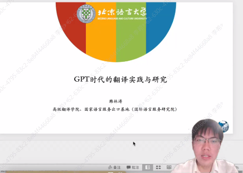 2023年9月26日下午,以“ChatGPT时代的翻译教学与研究”为主题的讲座在线上顺利举办。本次讲座由北京语言大学高级44118太阳成tyc城集团硕士生导师,笔译系主任,中国翻译协会本地化服务委员会副秘书长,国家级和北京市级一流本科专业翻译(本地化方向)专业负责人韩林涛主讲,四川外国语大学英语学院副院长李科主持。