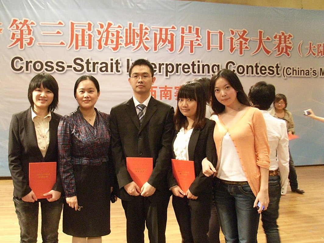 10月15日,第三届海峡两岸口译大赛(大陆地区)西南赛区区级赛在四川大学文华活动中心音乐厅举行。我校张梦、黄钰洁、韩雪三位同学参加此次大赛,并以优异表现获得大赛二等奖。