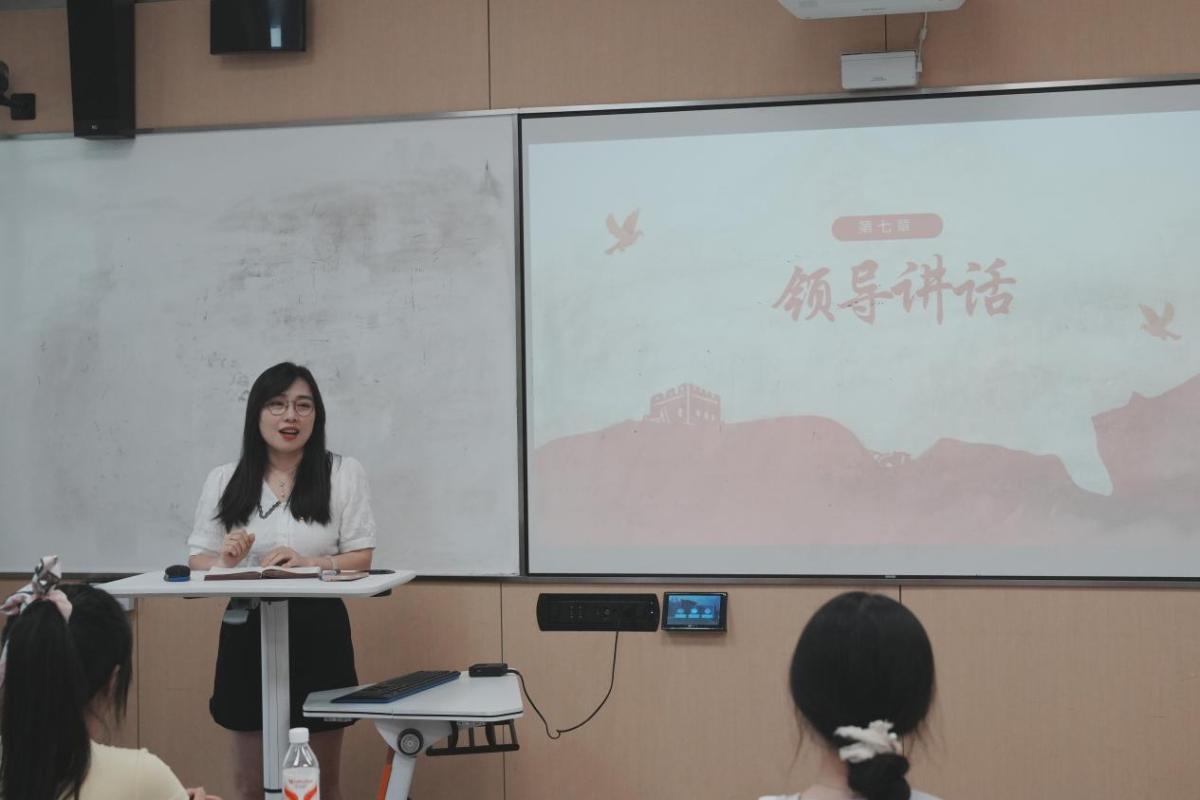最后,团总支书记张信对本次特色团日活动作出总结。她强调青年团员在对外传播中国声音、讲好中国故事中的重要作用。对团员们提出希望和要求,鼓励大家在今后的学习和生活中,继续深入学习习近平新时代中国特色社会主义思想,不断提升自身综合素质,努力成为具有家国情怀、国际视野、专业本领的时代新人,为推动中国对外话语体系建设贡献自己的力量。