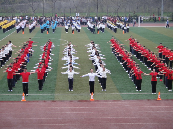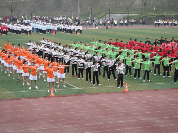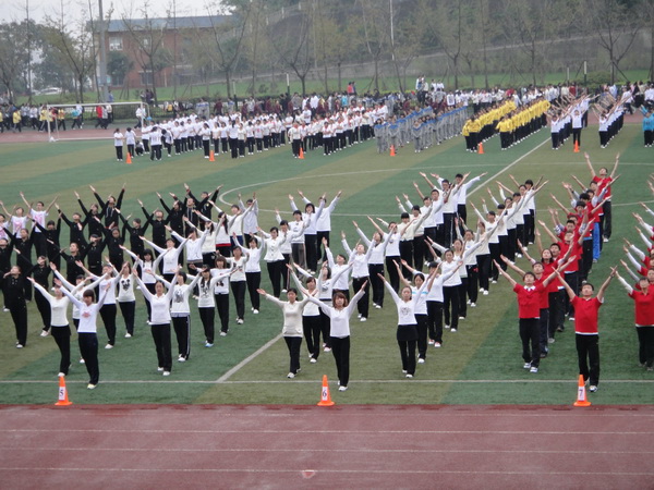 2011年10月30日下午,我院2011级全体新生在山上西区操场参加了由四川外语学院体育部组织的广播体操大赛,校领导、各系、二级学院党总支书记(副书记)以及评委们齐聚西区操场,共同参与川外一年一度的新生广播体操大赛。