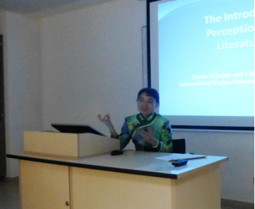 15日下午,傅晓微教授为特拉维夫大学英文系硕、博研究生做的学术报告题为“犹太文学在中国的接受与影响”。她介绍了20世纪20年代中国引进意第绪语作家促进白话文运动,到20世纪80-90年代以来犹太文学对中国新时期文学创作的影响,分析了犹太文学翻译如何影响中国作家和中国读者对犹太文化了解逐步深入的轨迹。讲座引起了在座研究生的广泛兴趣,他们从中国白话文运动与现代希伯来语、意第绪语文学运动的异同,到文学翻译对目的国文化的影响,文化差异导致的刻板印象等话题与傅晓微教授及讲座主持人Elana Gomel教授展开了热烈的讨论,原定一个小时的讲座延续到了两个多小时。