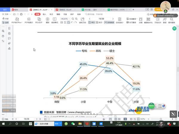 2023届硕士毕业生就业动员会在线上举行。会议由辅导员王品主持,2021级英语笔译、英语口译专业的170名同学参加了会议。