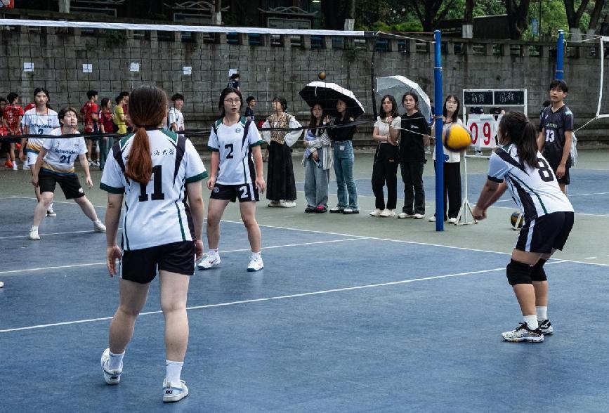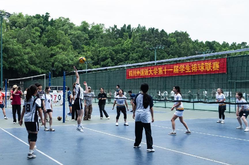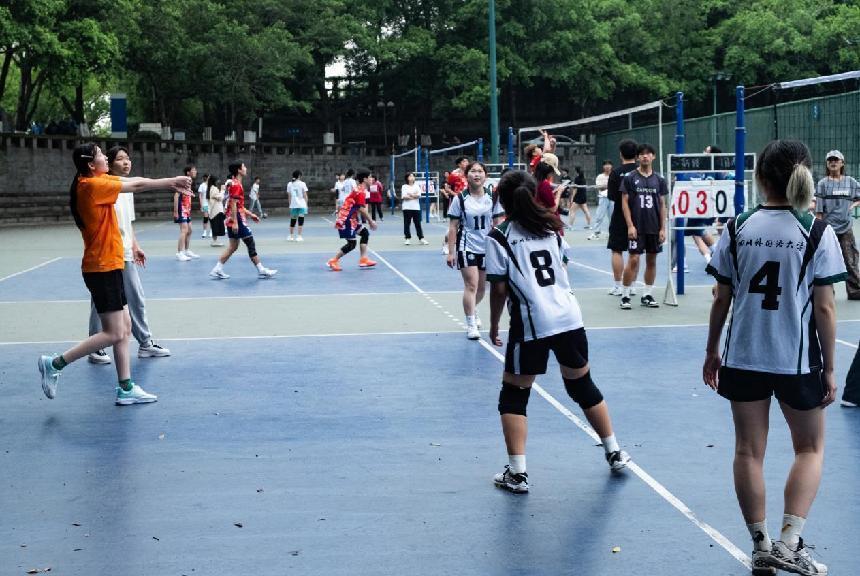 5月8日下午,四川外国语大学第十一届学生排球联赛决赛打响,44118太阳成tyc城集团与新闻传播学院女排联队齐心合力,奋勇拼搏,击败中国语言文化学院与德语学院联合女排队,夺得了本次校排球联赛冠军。