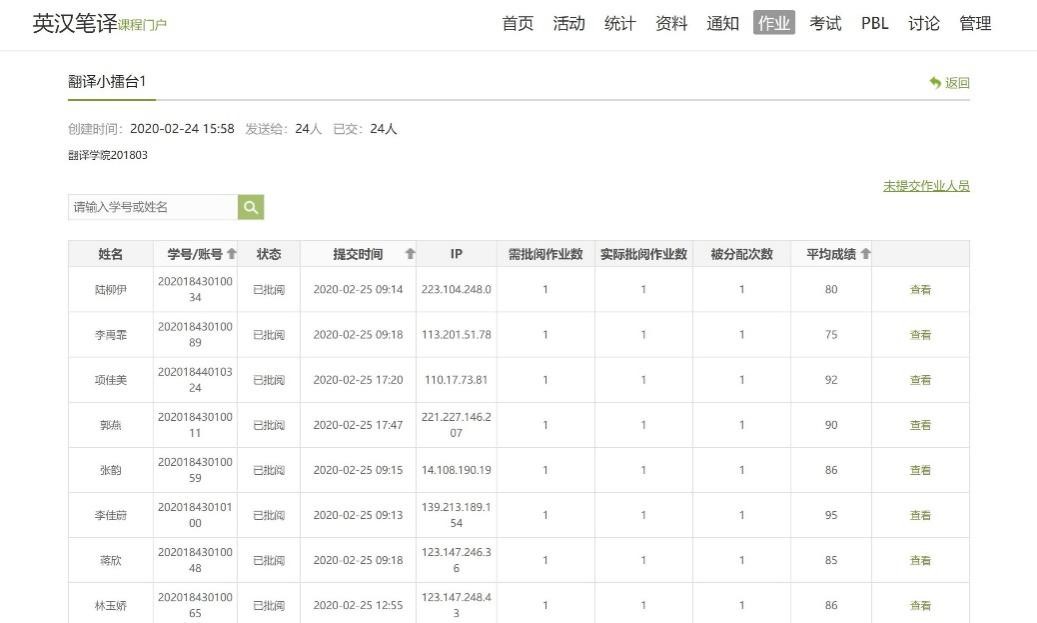 谈到这次线上教学,唐昉老师说到:“这次教学模式的转变让我深深感到线上教学不是课堂教学的网上直播,更需要教师从知识的提供者转变为学生学习的指导者,可充分利用已有优质慕课资源,实现多样化优质教学资源与学生个性化学习结合。比如针对《英汉笔译》课程,我给不同学习需求的同学分别推荐线上拓展学习资源:希望系统学习的同学浏览《翻译有“道”》慕课;偏爱影视歌曲翻译的同学加入《趣味英语与翻译》慕课;想要参加翻译资格考试的同学在《CATTI翻译资格考试笔译备考基础》慕课平台强化训练。课堂上,我则主要通过学习通+QQ群结合的模式,开展签到、音视频播放、讨论、答疑、测验等活动。虽然无法面对面讲授,但每一次的提问反馈,每一次的互动讨论,都能感觉到同学们的积极投入与专注。”