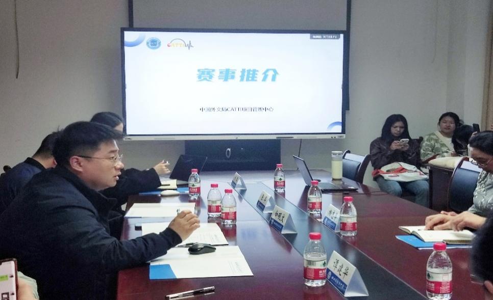 随后,伽砚文主任介绍了CATTI项目管理中心的基本情况和重点项目,着重强调了 CATTI杯全国翻译大赛的权威性、专业性和影响力。伽砚文主任赞扬了我校学生在CATTI杯翻译比赛中的积极表现,并希望同学们能继续发挥自身学科优势,提高参赛积极性,进一步拓宽翻译专业人才发展路径,提升综合素养。