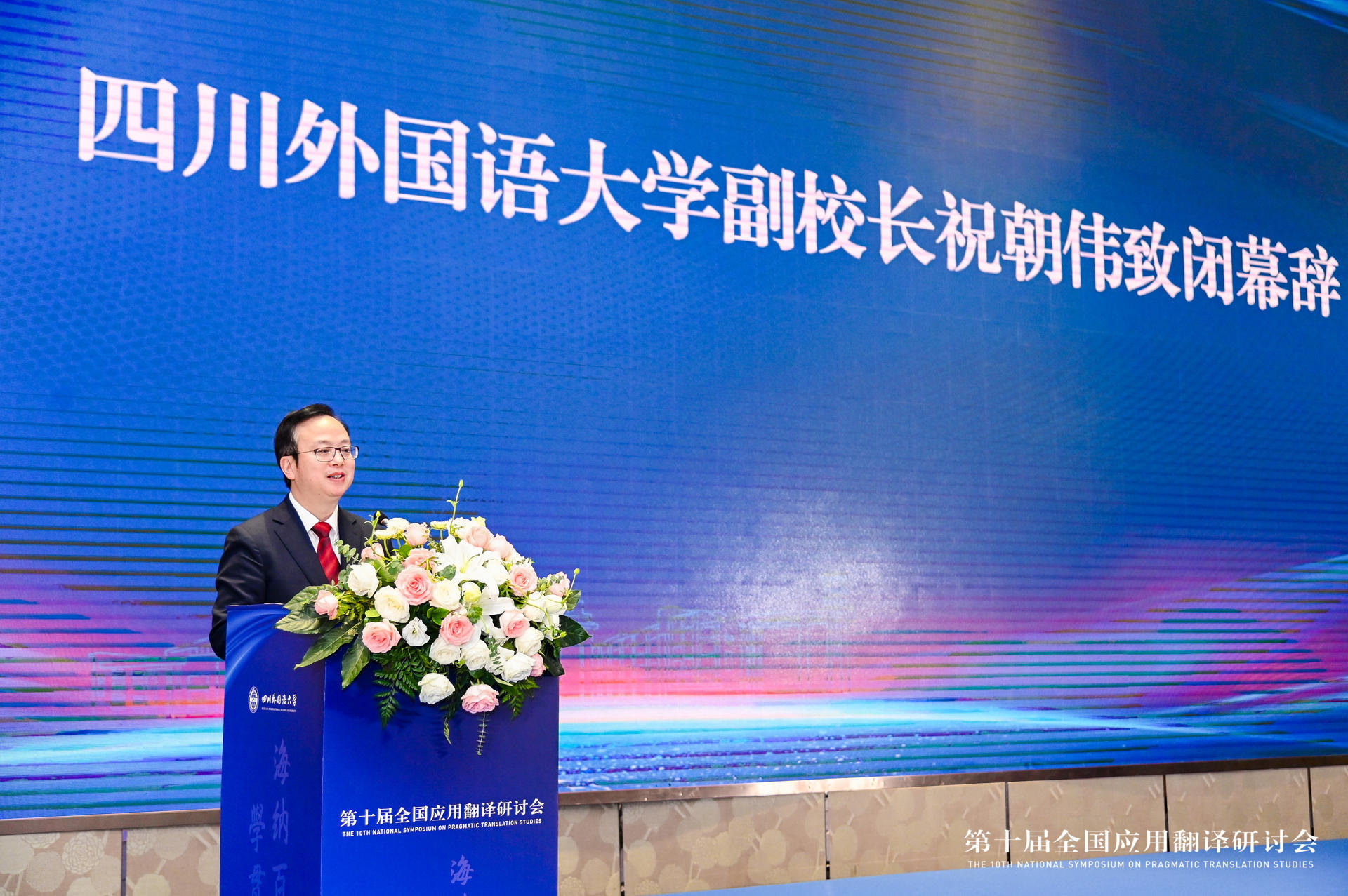 我校祝朝伟副校长向大会致闭幕词。他向大会胜利召开表示祝贺,代表学校向中国翻译协会、上海市科技翻译学会以及与会代表的支持信任表示感谢。他指出随着世界格局变化、社会经济发展和技术手段革新,翻译内涵不断扩展,如何在百年未有之大变局下讲好中国故事,传播好中国声音,是我们必须去思考的问题和承担的责任。他认为本届研讨会以“新文科背景下的应用翻译研究”为主题取得了丰硕成果,希望全国应用翻译研讨会在翻译界同仁的鼎力合作下越办越好,翻译事业蓬勃发展。