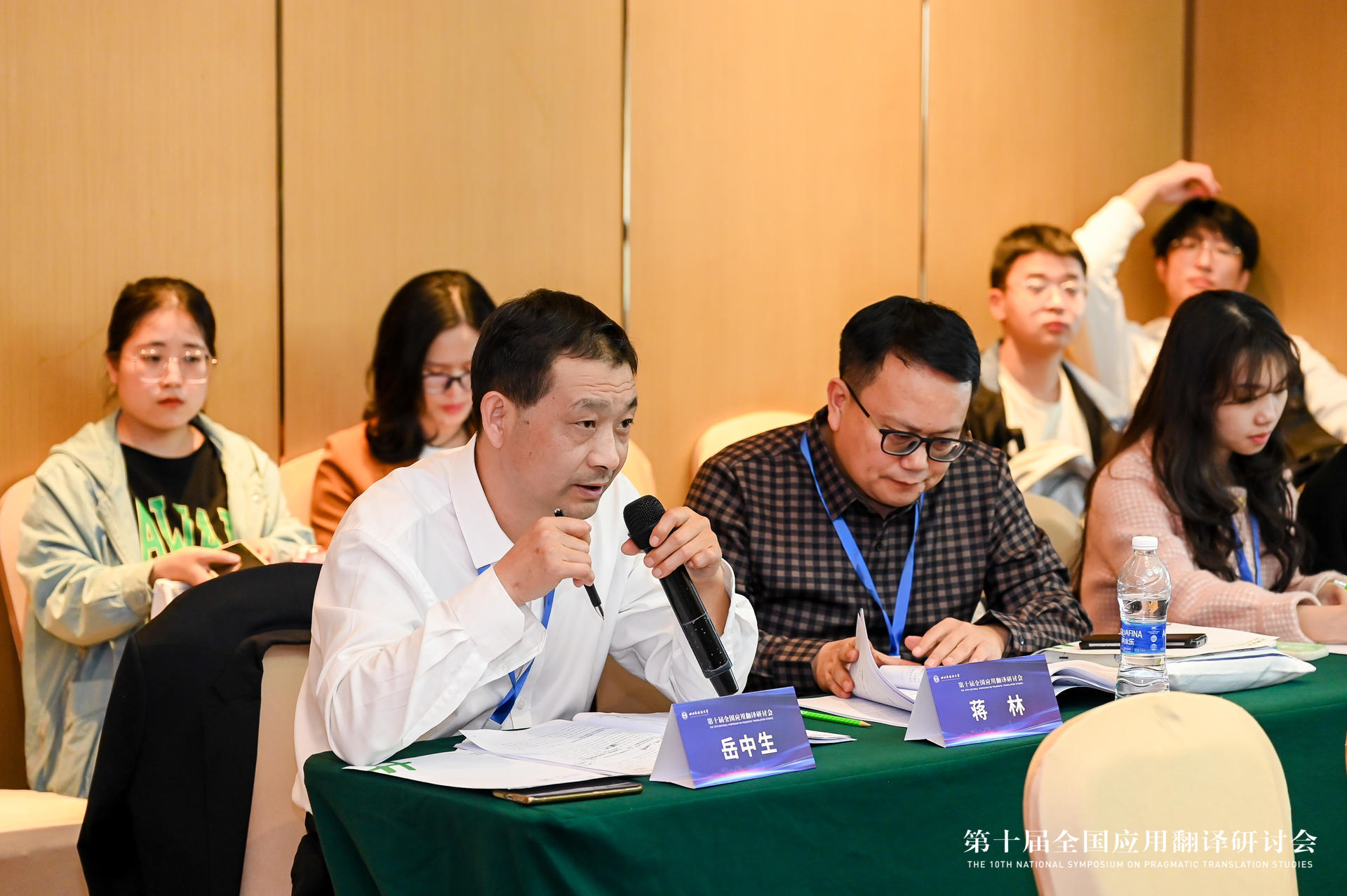 “应用翻译与翻译批评”分论坛由河南科技大学岳中生教授和四川外国语大学蒋林教授主持,与会学者讨论了博物馆文物和解说词翻译研究、学术翻译“信达雅”标准、知识重构与译本传播等翻译批评方面的问题。