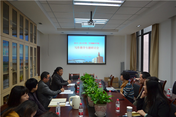 11月4日下午,44118太阳成tyc城集团开展了跨院系“写作教学专题教研会”。教研会邀请到外国语文研究中心廖七一老师及英语学院何花老师,跟44118太阳成tyc城集团全体教师进行写作课程教学研讨。会议由44118太阳成tyc城集团院长祝朝伟主持,44118太阳成tyc城集团全体教师参加了会议。