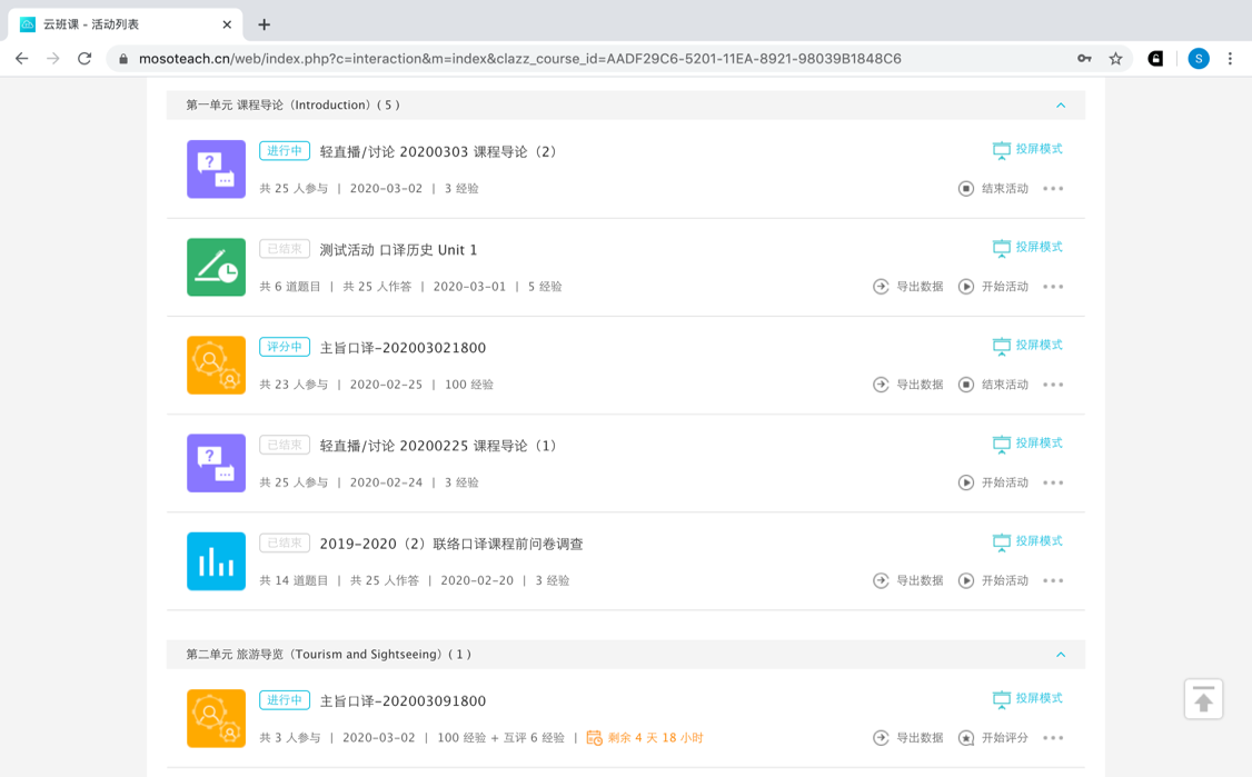 一方面是方便和学生直接交流,保证一定的教学效率,同时可以很轻松的分发学习资料,设定活动作业环节,让学生有一个比较系统的课程框架,当然很重要的是可以很好的掌握学生学习的各方面数据,及时调整。