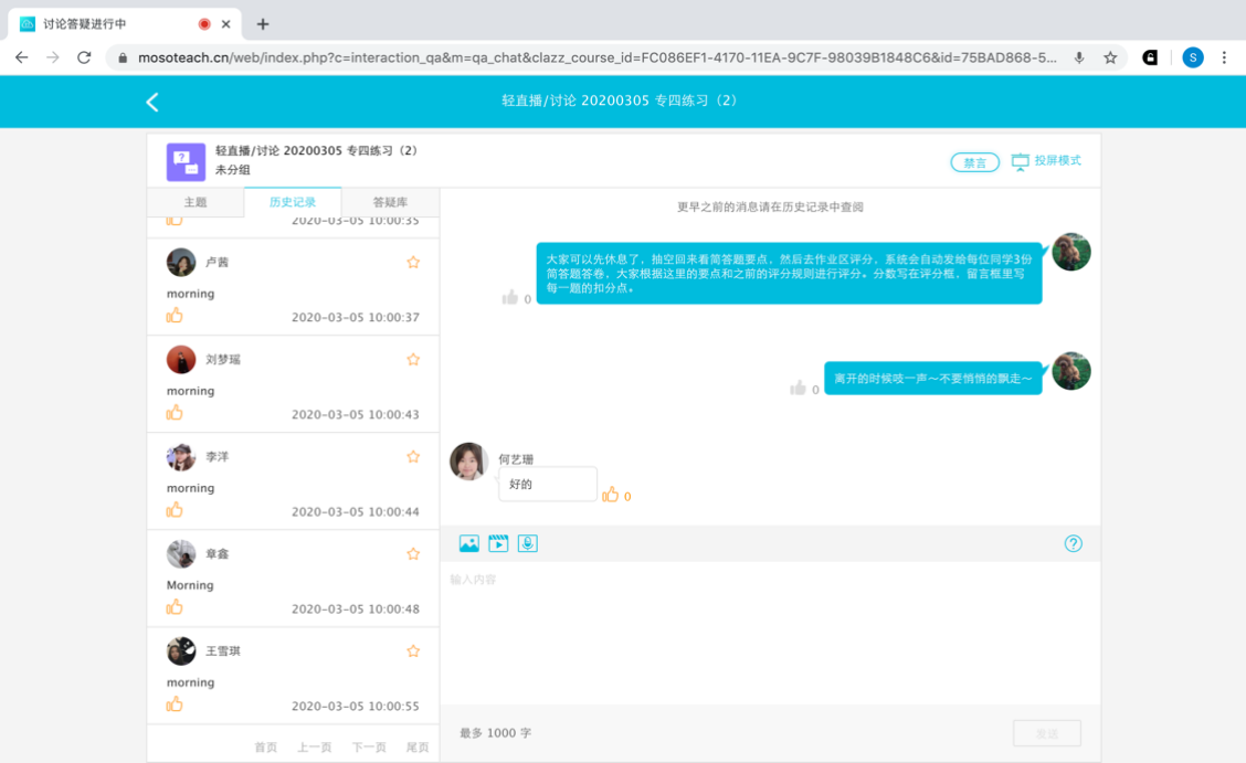 经过两周的线上教学,惊喜的是,同学们似乎在这个网络环境中和老师距离更近了,平时不爱说话的同学,开始比较积极了。平时课堂提问之后,磨蹭半天的同学们,现在居然主动的开始交流了。希望同学们可以继续保持,真正把学习主动性调动出来。当然,在线教学还有不少问题,比如在线课堂要求老师们的表达精准度更高了,课堂时间的把控更难了,备课中的活动设想和真正活动开展之间还是会有一定的差距。