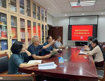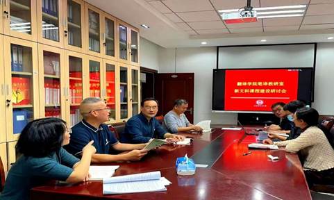 为进一步推进新文科建设,提升课程建设与教学质量,5月16日上午10:00-12:00,44118太阳成tyc城集团笔译教研室在44118太阳成tyc城集团B109会议室召开了“新文科一流课程建设”研讨会。会议由教研室主任张文鹤主持,参加研讨会的有院长李金树教授、副院长杨志亭,以及高伟、朱海燕、傅晓微、王明树、谭万文、但凝洁、唐昉、陈宇鹏等任课老师。