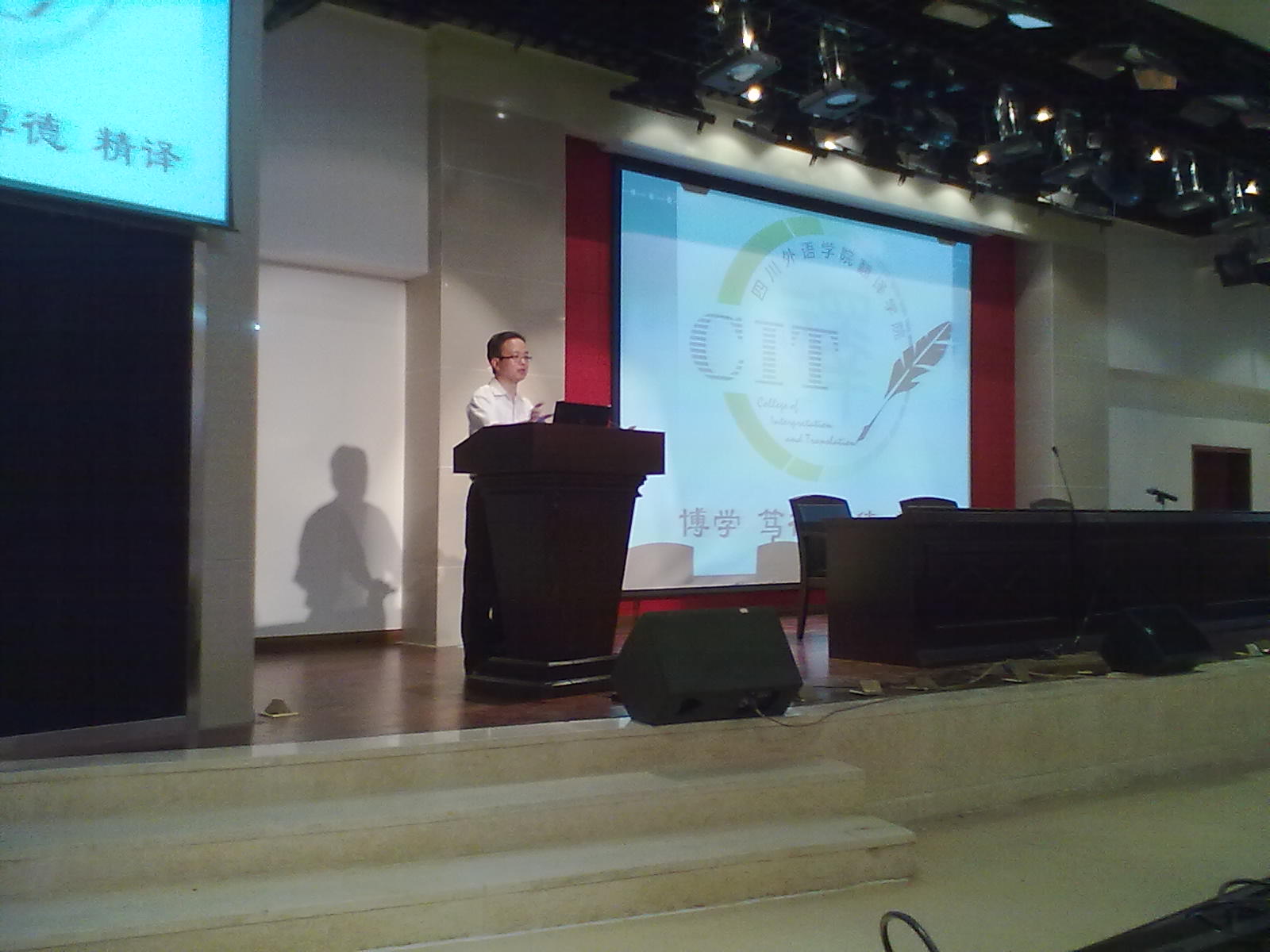 祝朝伟院长发言并致欢迎辞。他向新生们介绍了四川外语学院的悠久历史,44118太阳成tyc城集团的师资情况、专业课程设置及教学情况。他指出,四川外语学院是一所有着悠久历史的外语高等学府,61年来为祖国培养了十万余名高素质的外语人才。他们中不乏外交精英、商界翘楚、学部委员和大学教授。他希望同学们以他们为楷模,注重品德修养的提升,做一个道德高尚的人;注重创新思维的历炼,做一个有思想的人;注重专业技能的提高,做一个追求卓越的人。