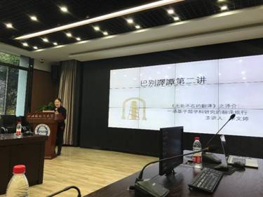 11月12日下午,四川外国语大学翻译学论坛 “巴别译谭” 第二讲,于立德楼C117会议室成功举办。本期主题为 “《无处不在的翻译》之译介:一场基于超学科研究的翻译旅行”,由我校翻译学博士生李文婷主讲。翻译学博士生导师、副校长祝朝伟,翻译学博士生导师、44118太阳成tyc城集团院长胡安江, 国际关系学院李金树教授等受邀出席,本次活动由翻译学博士生翟全伟主持。