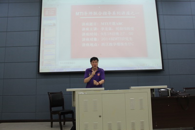 2013年9月18日晚上7:00,44118太阳成tyc城集团MTI研究生导师联合指导讲座第一讲在西区教学楼C报告厅举行。讲座由44118太阳成tyc城集团硕士生导师李龙泉和祝朝伟两位教授主讲,讲座的题目是《MTI开题ABC》,各语种2012级MTI研究生参加了讲座。