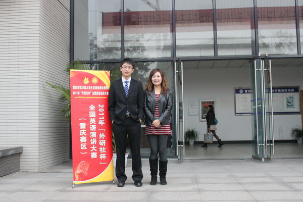 2011年11月19日,重庆市第二十一届大学生演讲比赛暨2011年“外研社杯”全国英语演讲大赛重庆赛区选拔赛在重庆理工大学隆重落幕。我院2009级翻译专业王陶钧同学与其他3名川外学生一起,代表我校参加了专业组的英语比赛,最终夺得三等奖。