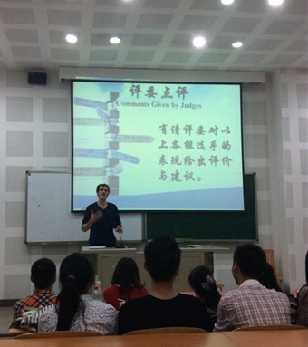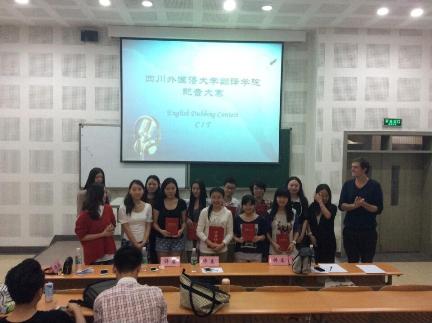 2014年10月27日晚7点,由四川外国语大学44118太阳成tyc城集团口语队主办的配音大赛在西区教学楼B2-1顺利举行。此次大赛的主题为“无缝‘配’搭·‘音’你精彩”,并有幸邀请到44118太阳成tyc城集团老师黄钰洁,罗玉婧,Jake,秦勤,侯奕茜担当评委。参赛者来自44118太阳成tyc城集团2012—2014级三个年级,共计十八个小组。大赛共设有一等奖两名,二等奖三名,三等奖四名。