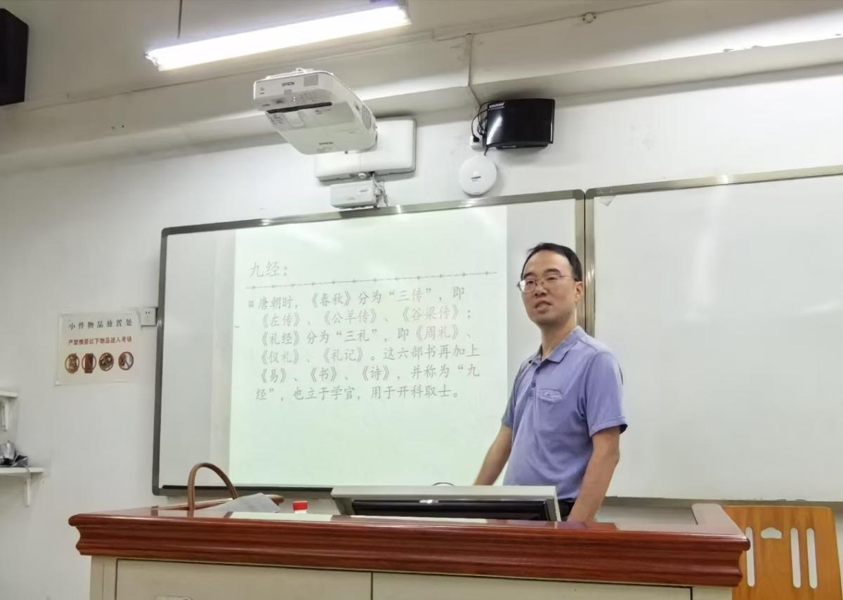 2025年5月13日晚,翻译协会特邀刘念业老师开设讲座,主题为“从《春秋大义》看辜鸿铭的典籍外译思想”。翻译协会会长赵新雷主持讲座。